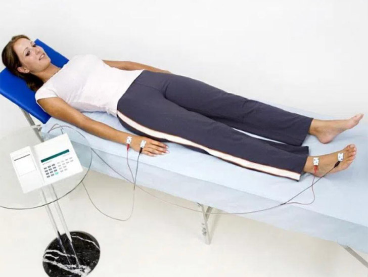 O exame de bioimpedância indica a quantidade de gordura e músculos no corpo, sendo realizado medindo a resistência do corpo à passagem de uma minúscula corrente elétrica.